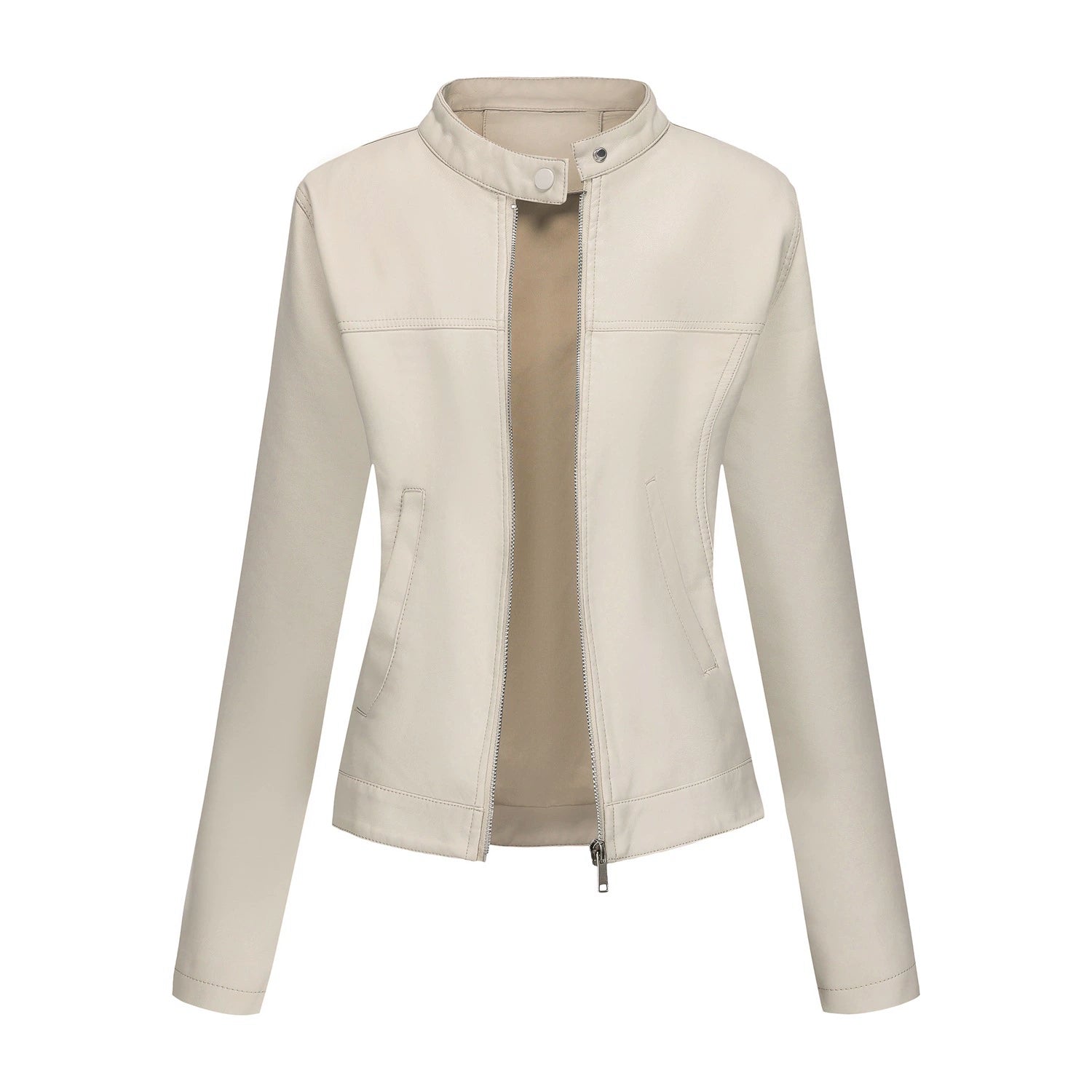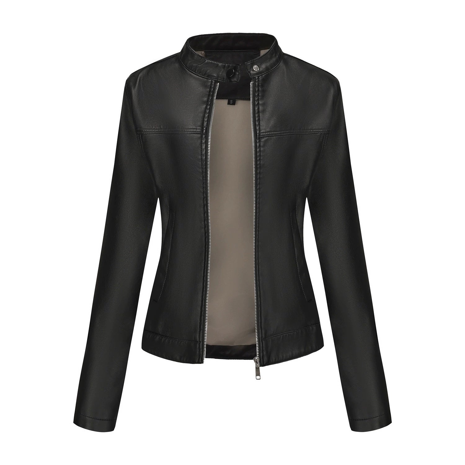 25 Spring & Fall New Arrival Casual Leather Clothing Female Fashion European and American Style Street European and American Code Stand Collar Jacket Cross-Border Motorcycle Clothing Outwear